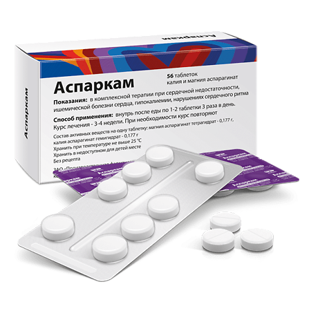 Аспаркама пить надо очень много, плюс, по словам моего врача, он не имеет оболочки, и поэтому гораздо хуже усваивается. Пью Панангин форте, калий и магний известного и зарекомендовавшего себя производителя. Сердце сжимает в разы меньше.