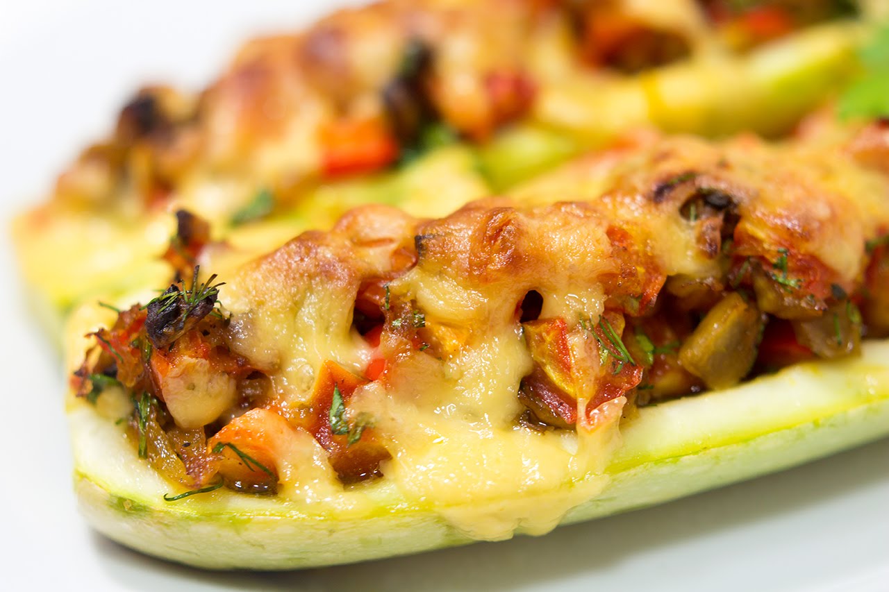 Лодочки из кабачков с начинкой из куриной грудки и овощей – это очень вкусное, сытное и яркое блюдо.