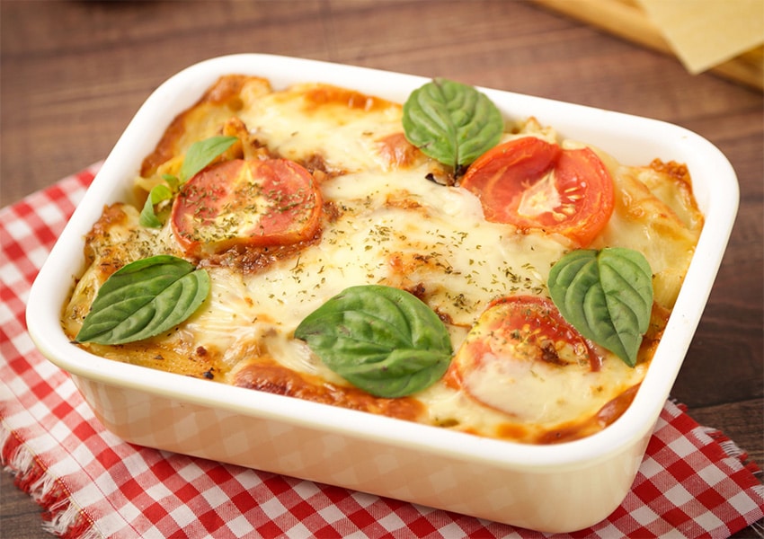 Свежая сладкая мускатная тыква придает приятное богатство вкуса, а частично обезжиренная моцарелла придает сырную массу.Свежий молодой шпинат добавляет витамины и минералы в это вегетарианское блюдо.