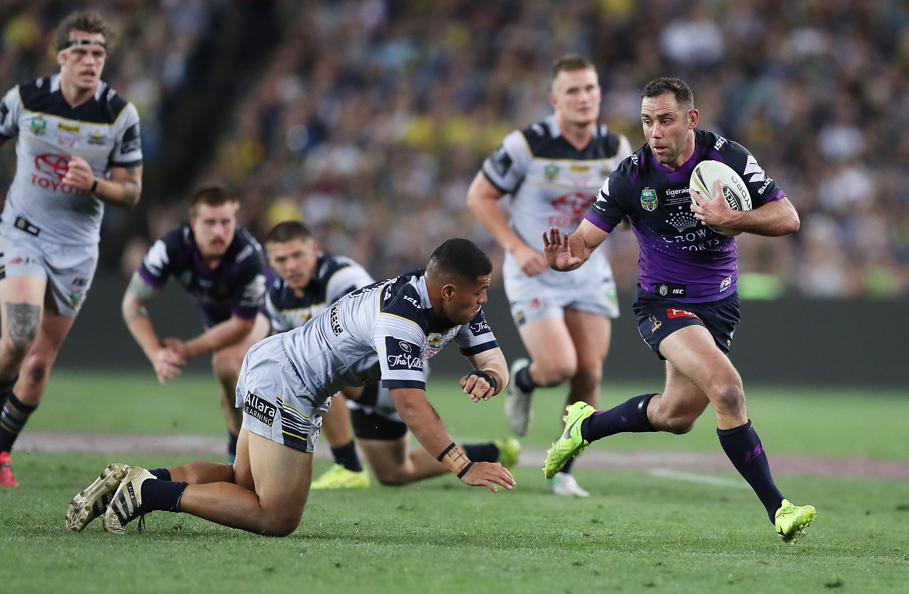 - игроку, бегущему за мячом, атаковать или толкать других игроков;